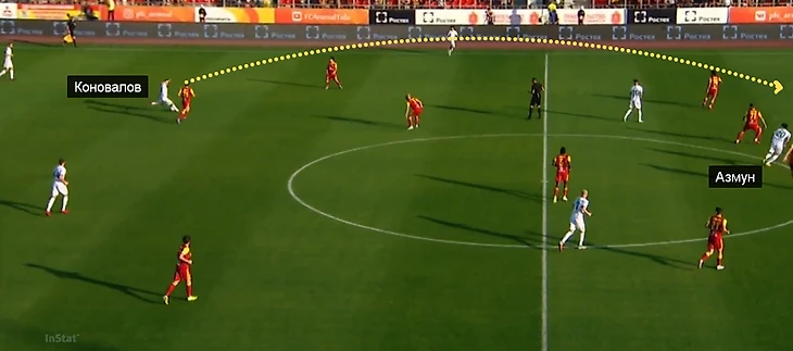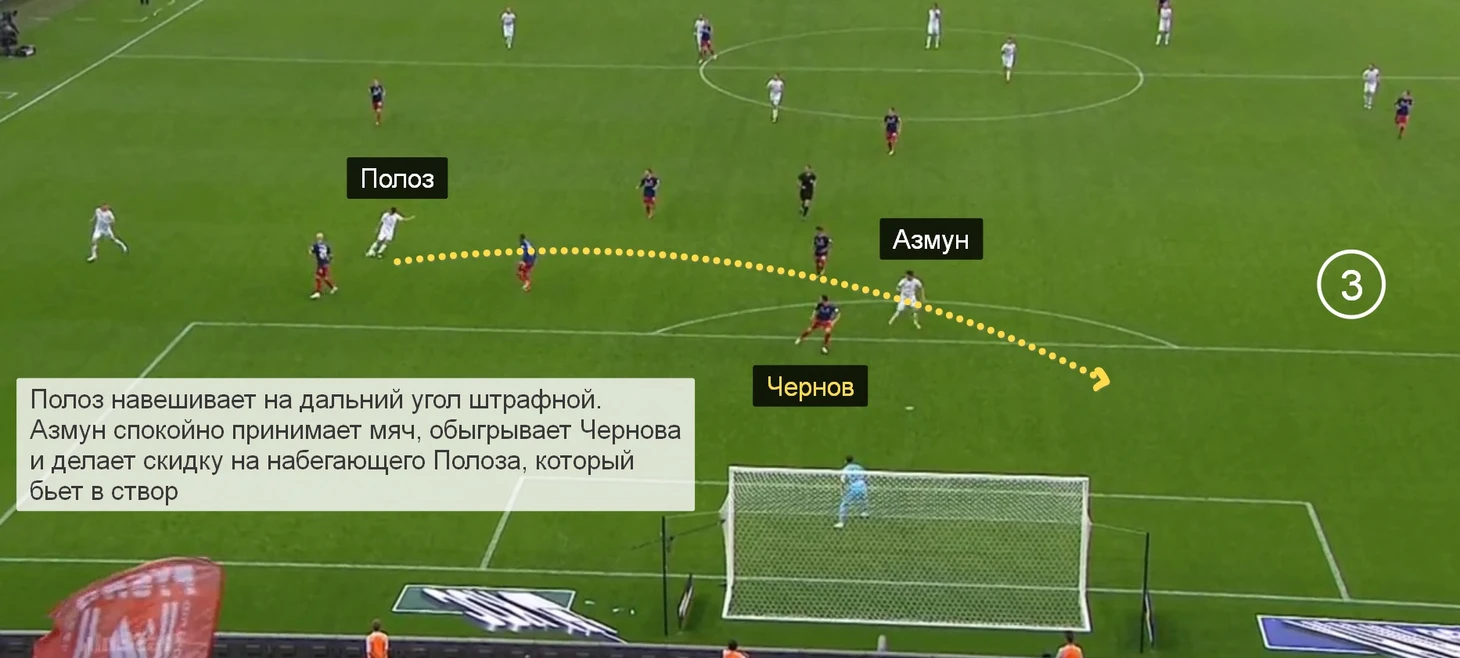 Еще одно очень важное качество Азмуна – игровой интеллект, позволяющий открываться в правильных зонах. На примере матча с ЦСКА его классно подчеркнул Александр Григорян.