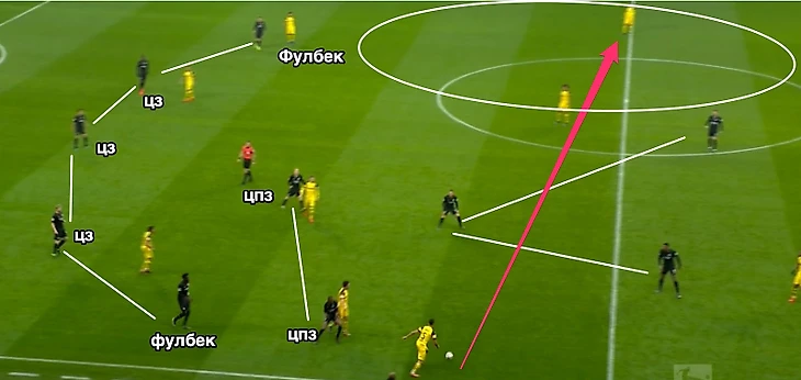 Играя 4 на 4 у своих ворот, «Боруссии» приходилось искать варианты доставки мяча верхом на кого-то из тройки атакующих полузащитников. То же самое придется делать и Пятову, если «Анйтрахт» не передумает играть в свой футбол, уже начиная с первого матча против «Шахтера».