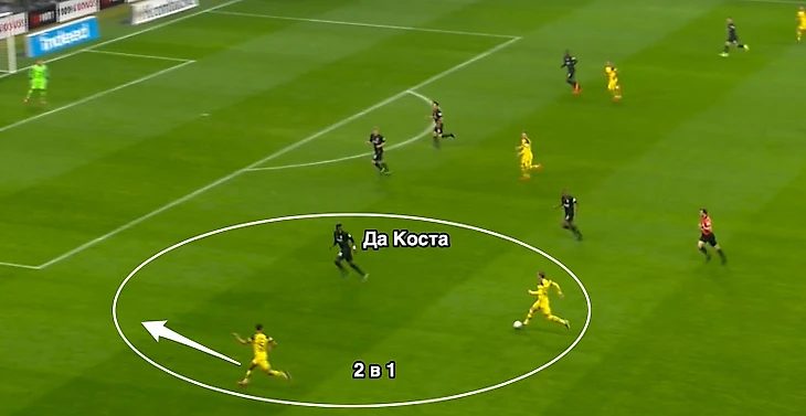 Также много будет зависеть не только от качества переводов его друзей с правого фланга, но и от взаимодействия Исмаили с тем, кто выйдет рядом с ним на позиции левого атакующего полузащитника. Бразильский левый защитник может и сам повозить Да Косту (и Костич и Да Коста в среднем по сезону делают 1.9 отбора за матч, это не очень много), но с помощью левого полузащитника это можно будет сделать еще эффективнее.