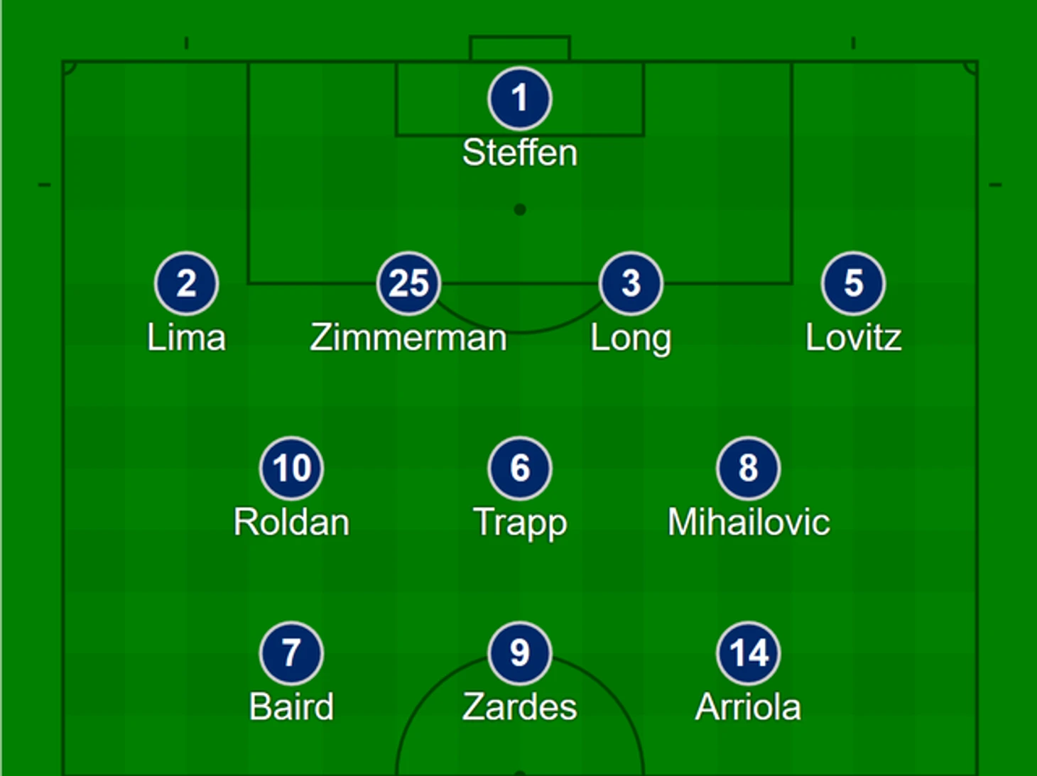 По сравнению с предыдущей игрой Берхалтер сделал две замены. В центре поля вместо Брэдли появился Трапп, а на левом фланге атаки Арриола вместо Эбобисса.