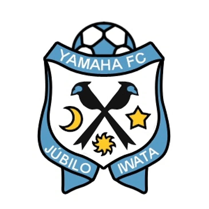 Синие полосы сверху и снизу эмблемы отсылают нас к местным гидроресурсам. Под ними подразумеваются главная река города Иваты Тенрю, а также менее значимые речушки Оои, Абэ и Фудзи. Вверху логотипа также можно обнаружить название знаменитого своими мотоциклами концерна, что вполне логично: ведь команда создавалась под его покровительством.