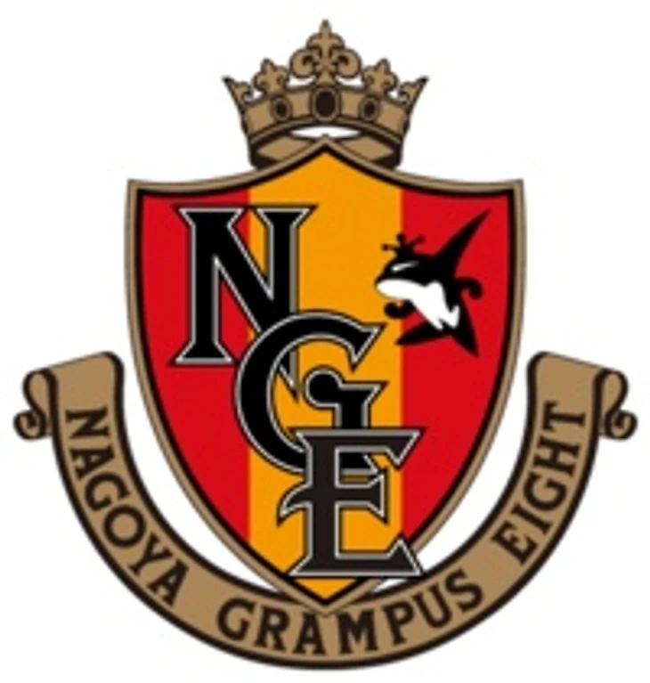 Свою символику и название команда получила благодаря главным символам города. На нынешнем гербе Нагои они не нашли своего отражения, однако являются важными элементами местного культурного кода. Во-первых, это серый дельфин, которым местные берега заполнены до отказа. В честь него появилась вторая часть названия команды, так как Grampus – латинское обозначение этого вида млекопитающих. Он же и отображён на эмблеме в правой её части.