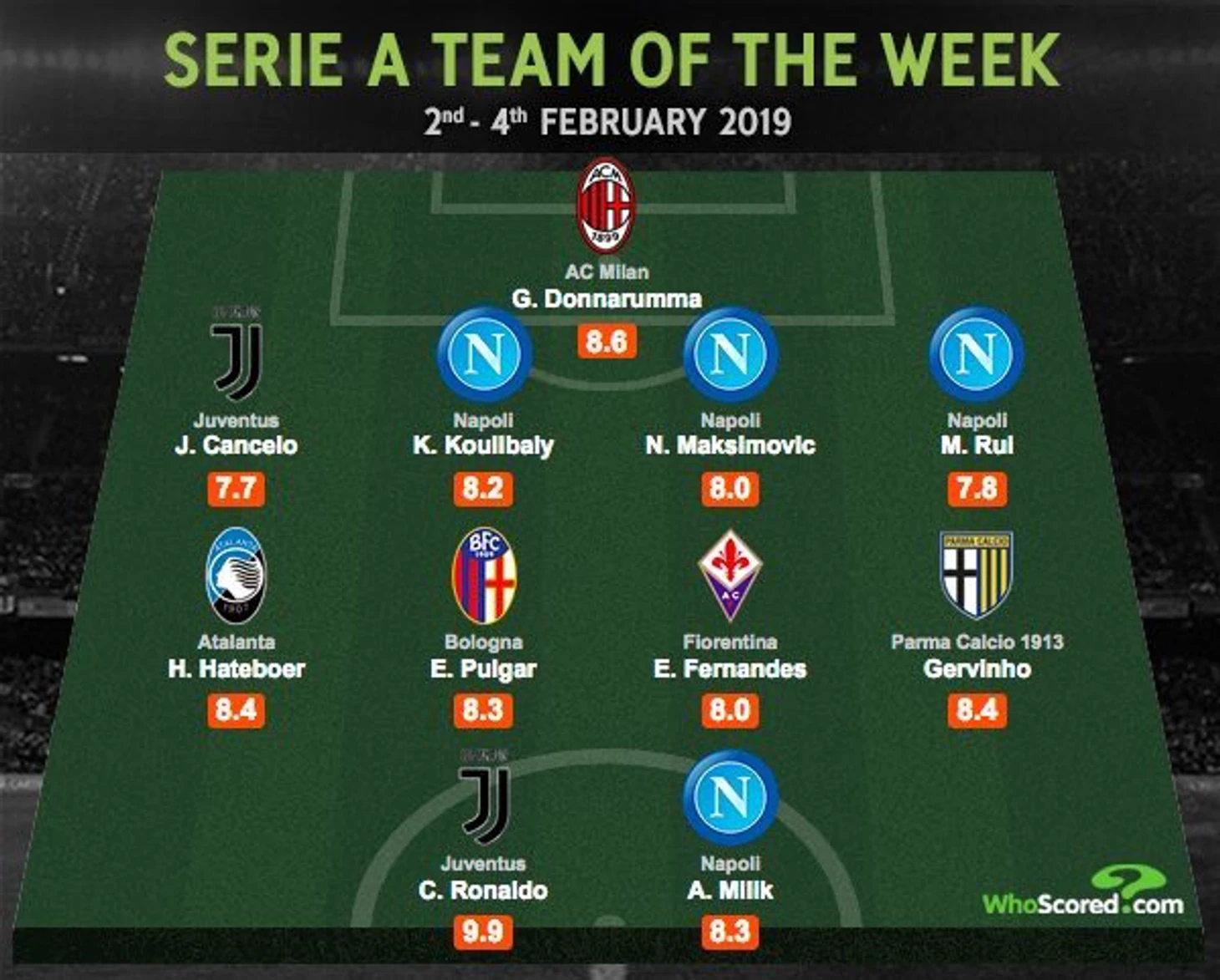 Символическая сборная последнего тура Серии А от WhoScored.com.