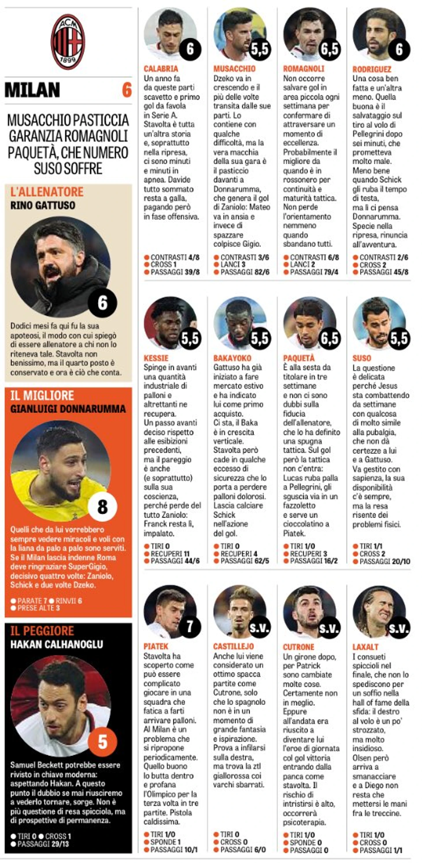 Оценки от La Gazzetta dello Sport за матч против "Ромы".
