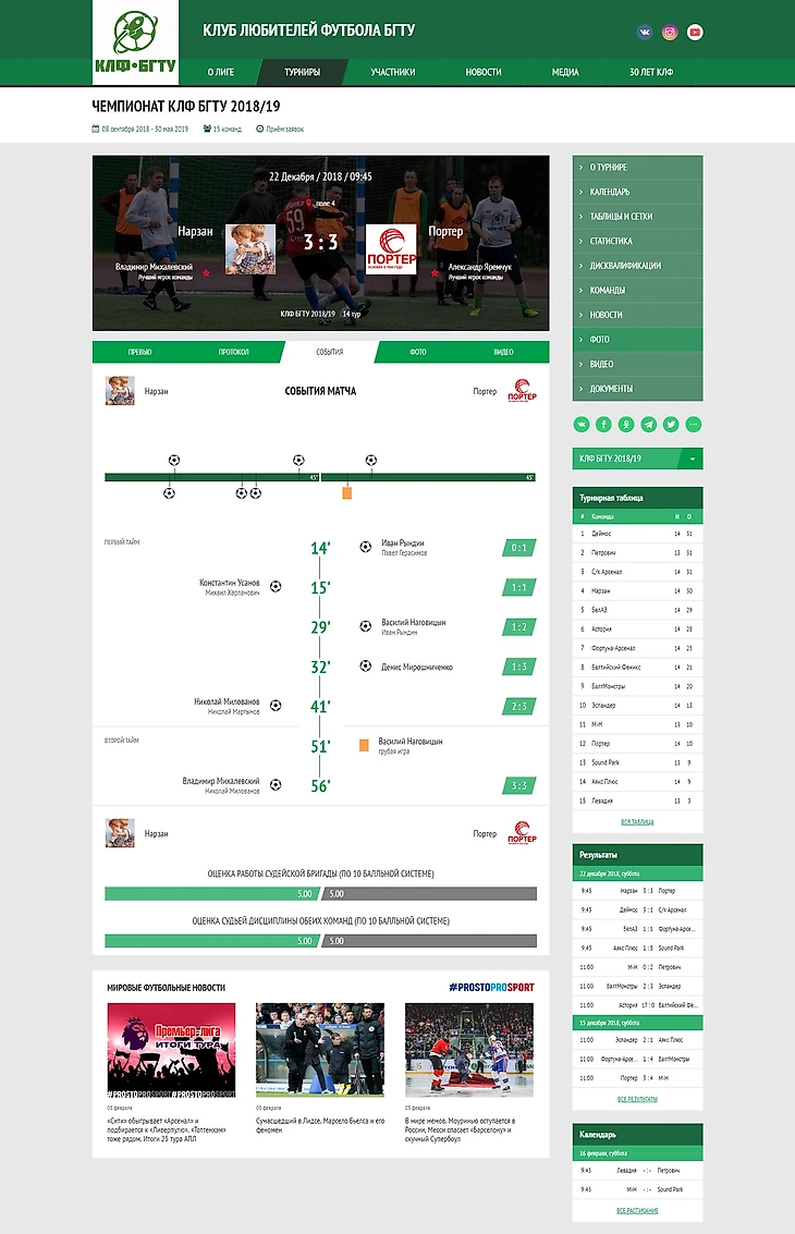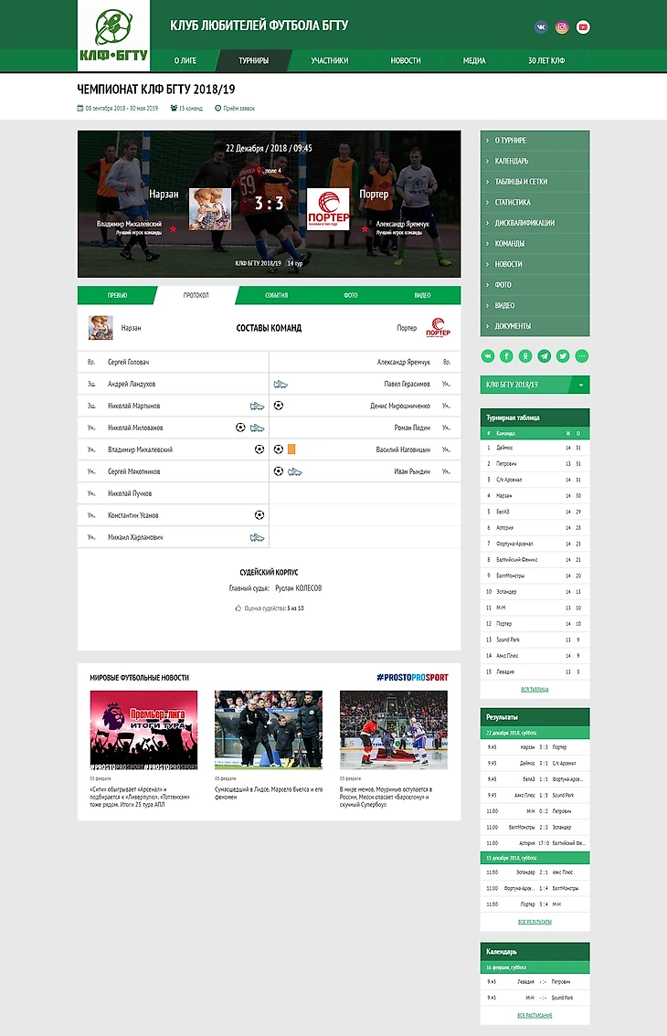 В 2014 году был создан сайт на Wordpress, собственными силами, что уже было шагом вперед. Так появилась возможность публикации новостей с фотографиями, можно было поставить виджеты турнирных таблиц, вставить с помощью плагинов фотоальбомы. Выглядело это, конечно, не очень красиво и современно, но минимальные функции выполняло. Все попытки сменить дизайн или внедрить какую-то функцию упирались в то, что это стоило немаленьких денег и, при этом, принципиально не обновляло качество.