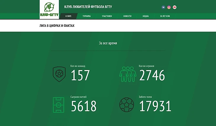 За 32 года существования лиги было проведено множество Чемпионатов и Кубков. Благодаря сохраненным печатным протоколам и Вестникам, освещавшим сезонные достижения, удалось не потерять и перенести игровую статистику за всю историю лиги на обновленный сайт КЛФ БГТУ. За все время существования лиги в ней приняло участие более 150 команд и было забито почти 18 тысяч голов!