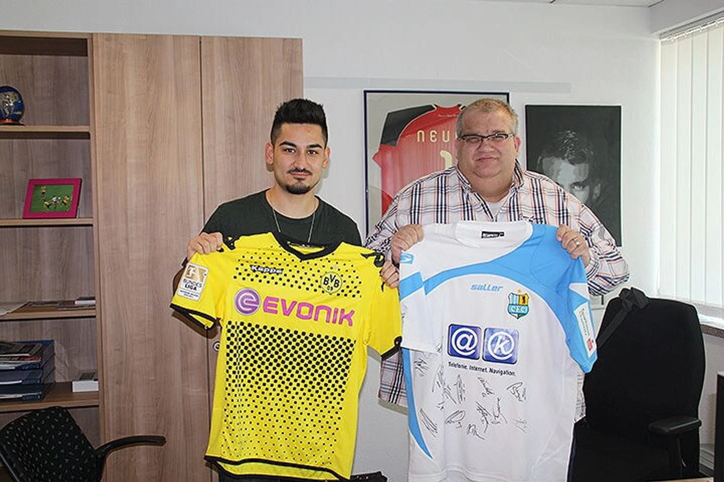 Магазин Mobile World 24 располагается на оживленном перекрестке в Эссене в одном здании с магазинами жалюзи и матрасов. Рядом с салоном связи еще две заправки и игротека. Кабинет Олафа Герхардта похож на футбольный музей - на стенах висят в рамках футболки с автографами Тони Крооса, Илкая Гюндогана, Мануэля Нойера и других игроков. Все это - благодарность Олафу за проделанную работу.