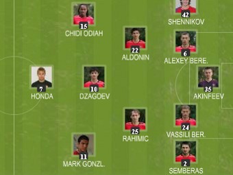 4-5-1, при необходимости легко транформирующаяся в 4-3-3 - отличная схема для выездного матча против команды, где оборона не является сильнейшим звеном. Но при беглом взгляде на состав просто охреневаешь :) Другого слова и не подобрать. По мнению составителей превью, в ЦСКА готовы к матчу Акинфеев, выбывший на полгода, и Хонда (на два месяца), да ещё и на острие атаки. Там у армейцев нет, кстати, ни Вагнера, ни Думбья, автора дубля в Лилле. Зато в составе Рахимич, твердый игрок основы, Чиди Одиа на месте вингера, и совершенно здоровый Марк Гонсалес. Там же рядом Щенников...