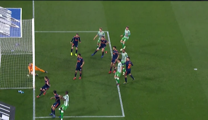 А теперь смотрим финальные минуты. Компенсированное время, «Бетис» ведет 2:1. «Валенсия» рвется отыгрываться и отыгрывается! Герой – Гамейро, который провел матч с гигантским синяком под глазом и, кстати, отдал голевую Черышеву.