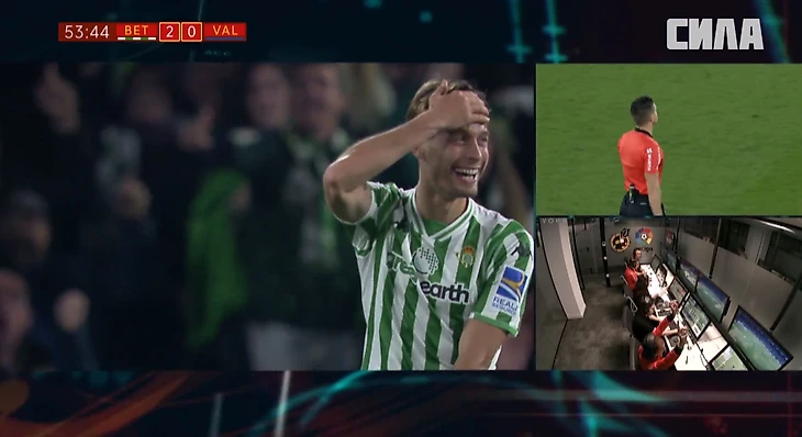 Гол сразу не засчитали, пришлось просить помощи у VAR. Игроки «Бетиса» праздновали гол, а Каналес просто схватился за голову!