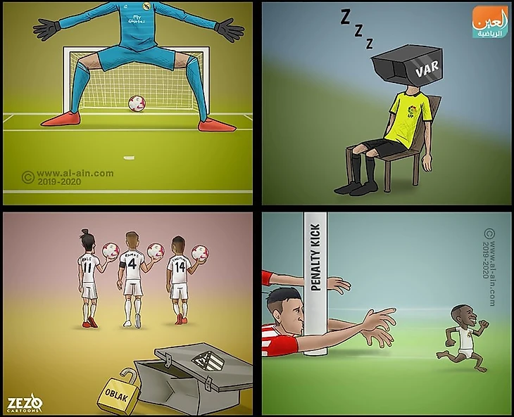 Тибо Куртуа снова пропустил между ног; неоднозначные судейские решения в обе стороны; Ян Облак не спас от трех пропущенных мячей, а Винисиус Жуниор удирает от защитников "матрасников".