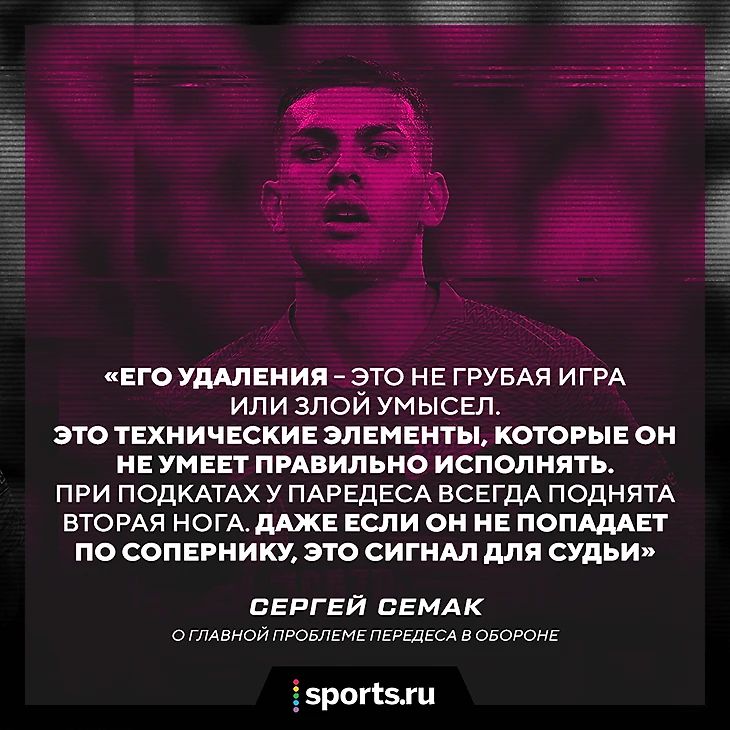– Его удаления – это не грубая игра или злой умысел. Это технические элементы, которые он не умеет правильно исполнять. С минским «Динамо» действительно было неспортивное поведение. С «Ахматом» Паредес отбирал мяч с большим желанием, но он просто не умеет это правильно делать. Например, при подкатах у Паредеса всегда поднята вторая нога. Даже если он не попадает по сопернику, это сигнал для судьи. После удаления с «Динамо» он правильно все понял, у нас абсолютно не было никаких недопониманий.