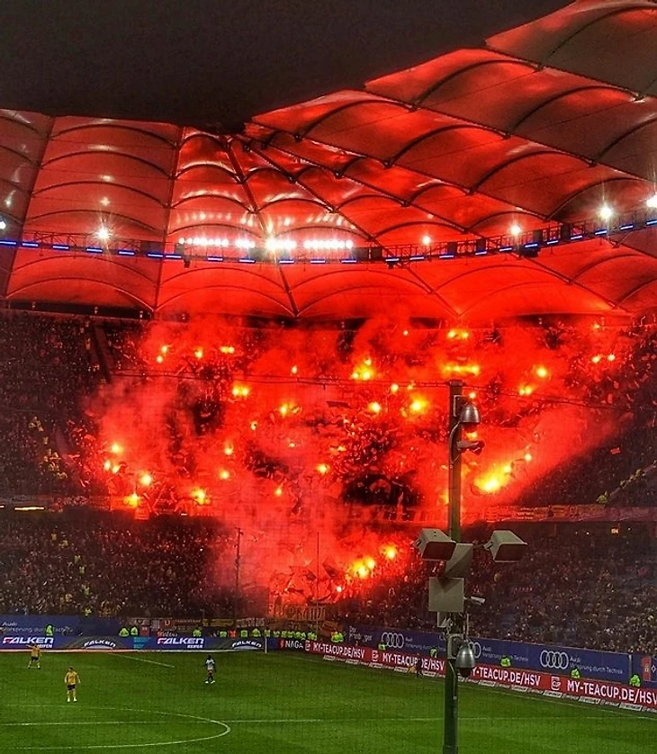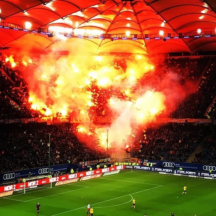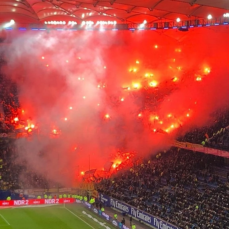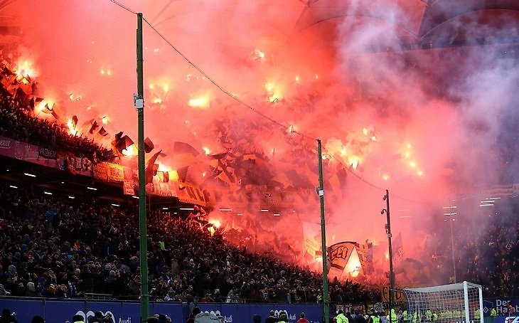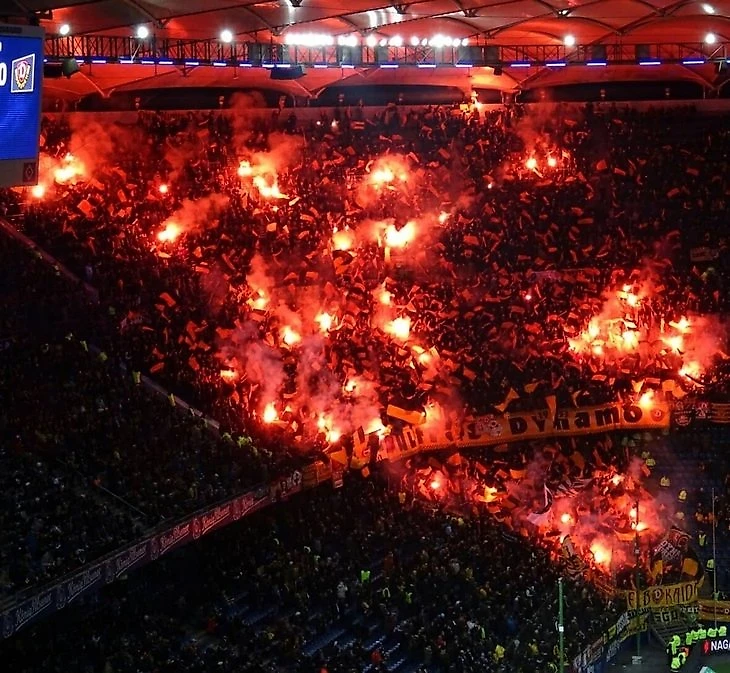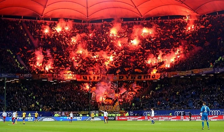 В понедельник во второй бундеслиге была заруба – «Гамбург» (лидер турнира) принимал дрезденское «Динамо» из середины таблицы. От Дрездена до Гамбурга почти 500 км, но фанаты гостей заполнили целый сектор. И кое-что с собой привезли.