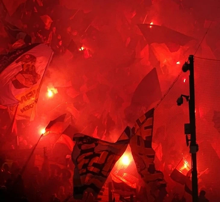 Фанаты из Дрездена ни из-за чего не бесятся, им просто нравится дымить.