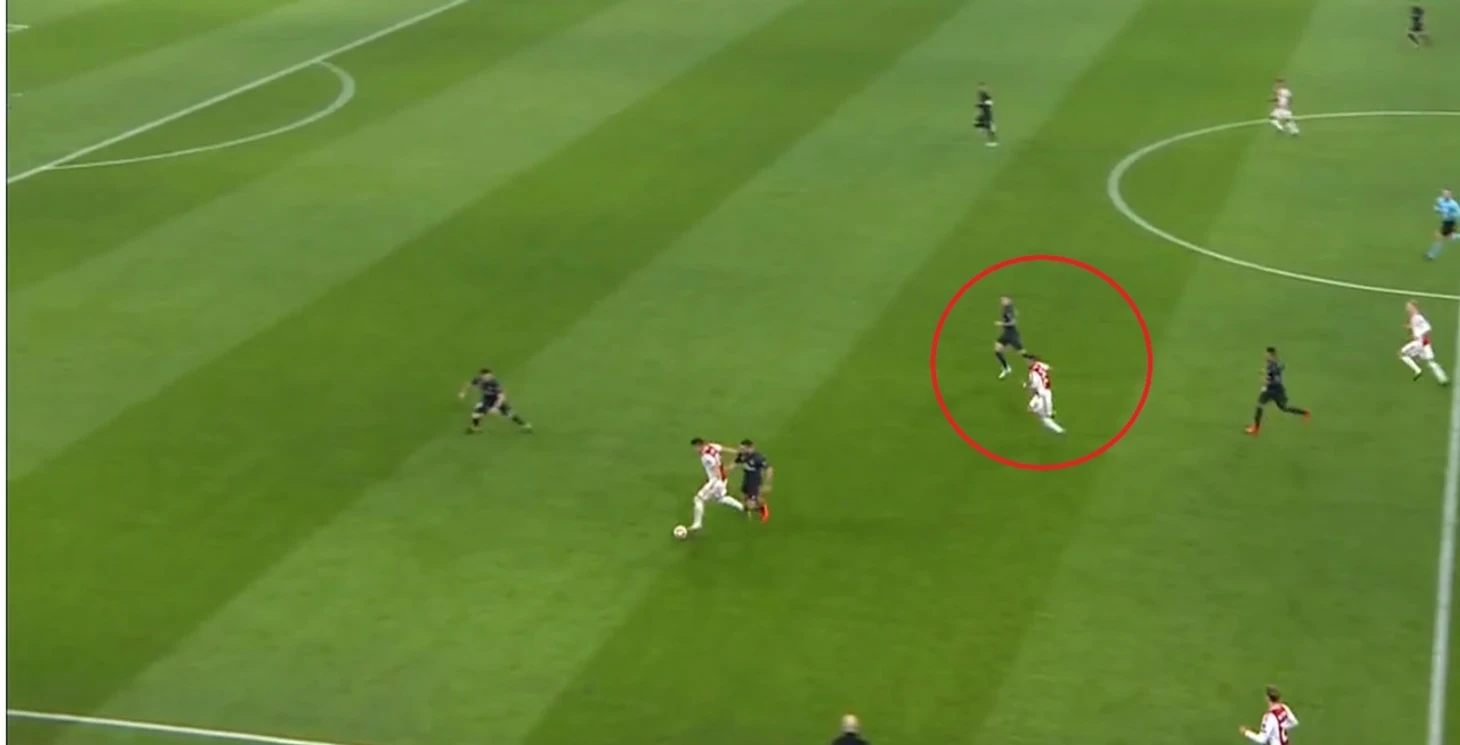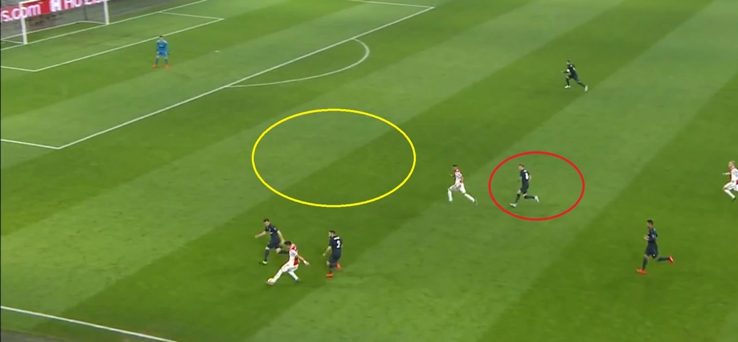 Затем на страховку всех (Карвахаля, Крооса и Начо) смещается Рамос, который пяткой прерывает по сути голевой пас на нападающего Аякса, так как Регилон не успевал его накрыть.