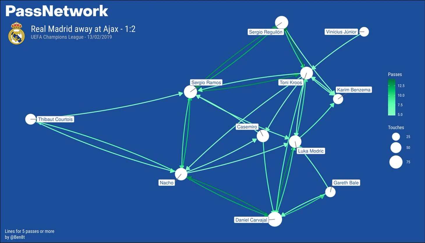 А теперь предлагаю вам взглянуть на графику, где показаны основные направления передач всех игроков Мадрида.