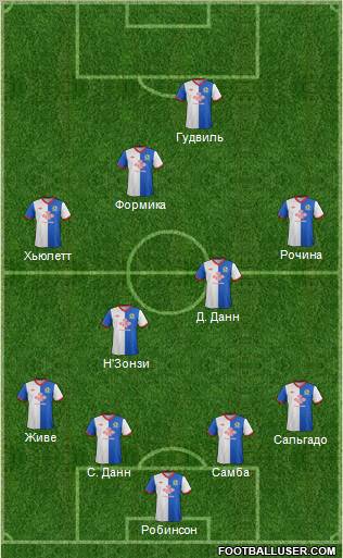 "Блэкберн" (4-4-1-1): Робинсон - Сальгадо, С. Данн, Самба, Живе - Хьюлетт, Н′Зонзи, Д. Данн, Рочина - Формика, Гудвиль.