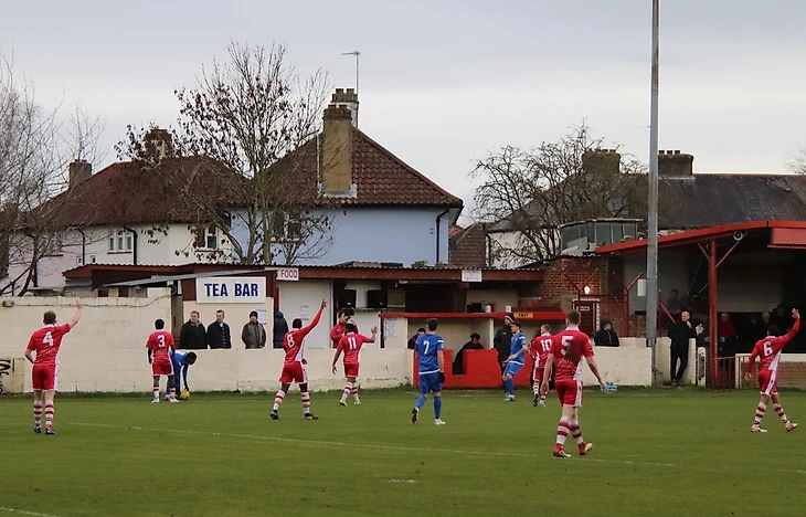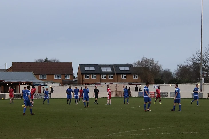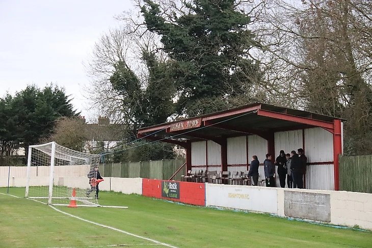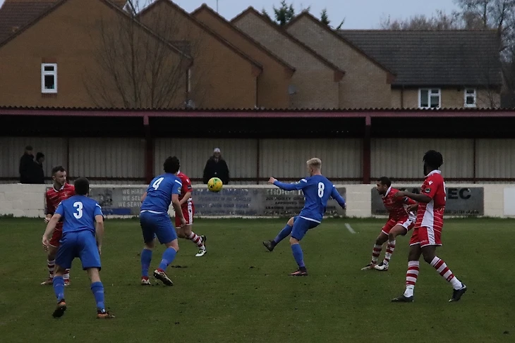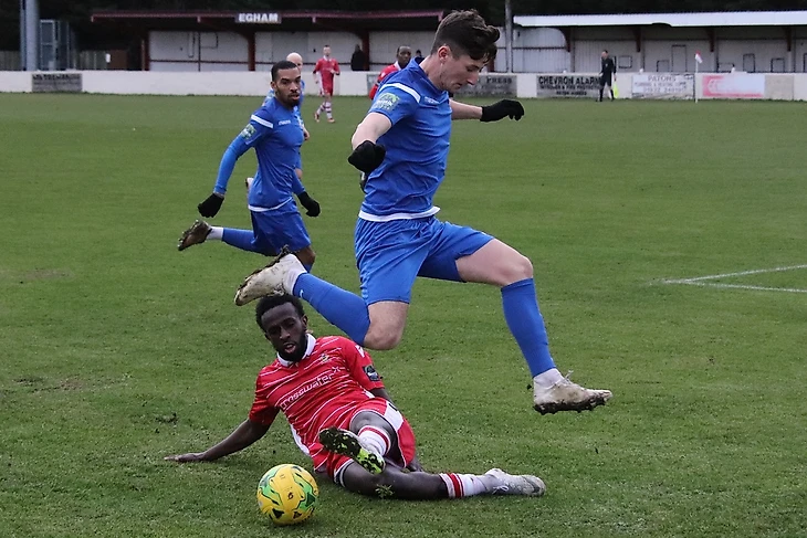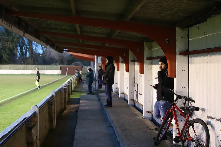 Томным зимним вечером «Эгем Таун» (в красном) принимает «Чалфонт-Сент-Питер» с 15 места. Заметьте, как (опять же традиционно) много легионеров и выходцев из теплых стран в составе обеих команд.