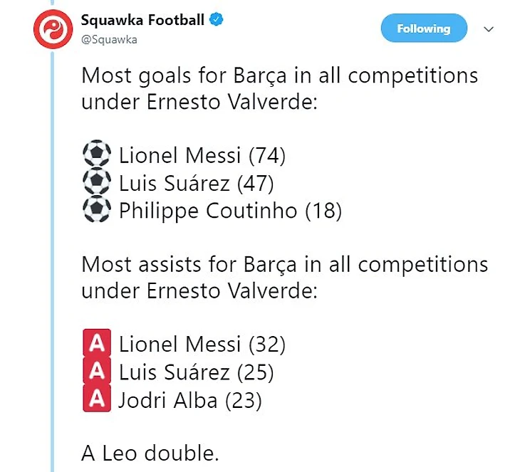 Главная проблема «Барселоны» — колоссальная зависимость от игры Месси. Между Лео и остальными гигантская пропасть. Вот, например, статистика по голам и ассистам за время работы Вальверде.