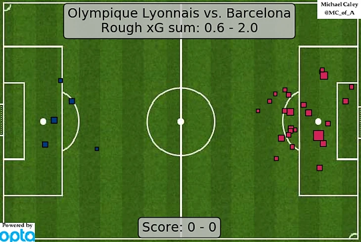 Продвинутая статистика однозначно переоценила удары Садио Мане. Несмотря на то, что оба раза сенегалец бил по воротам с близкого расстояния (важный показатель для подсчета xG) удары у него были неподготовленные и судорожные, а потому реальной опасности для Нойера не было. С учетом погрешности, «Барса», «Лион», «Ливерпуль» и «Бавария» наиграли на 5,3 гола. На табло, как вы помните, горели нули.
