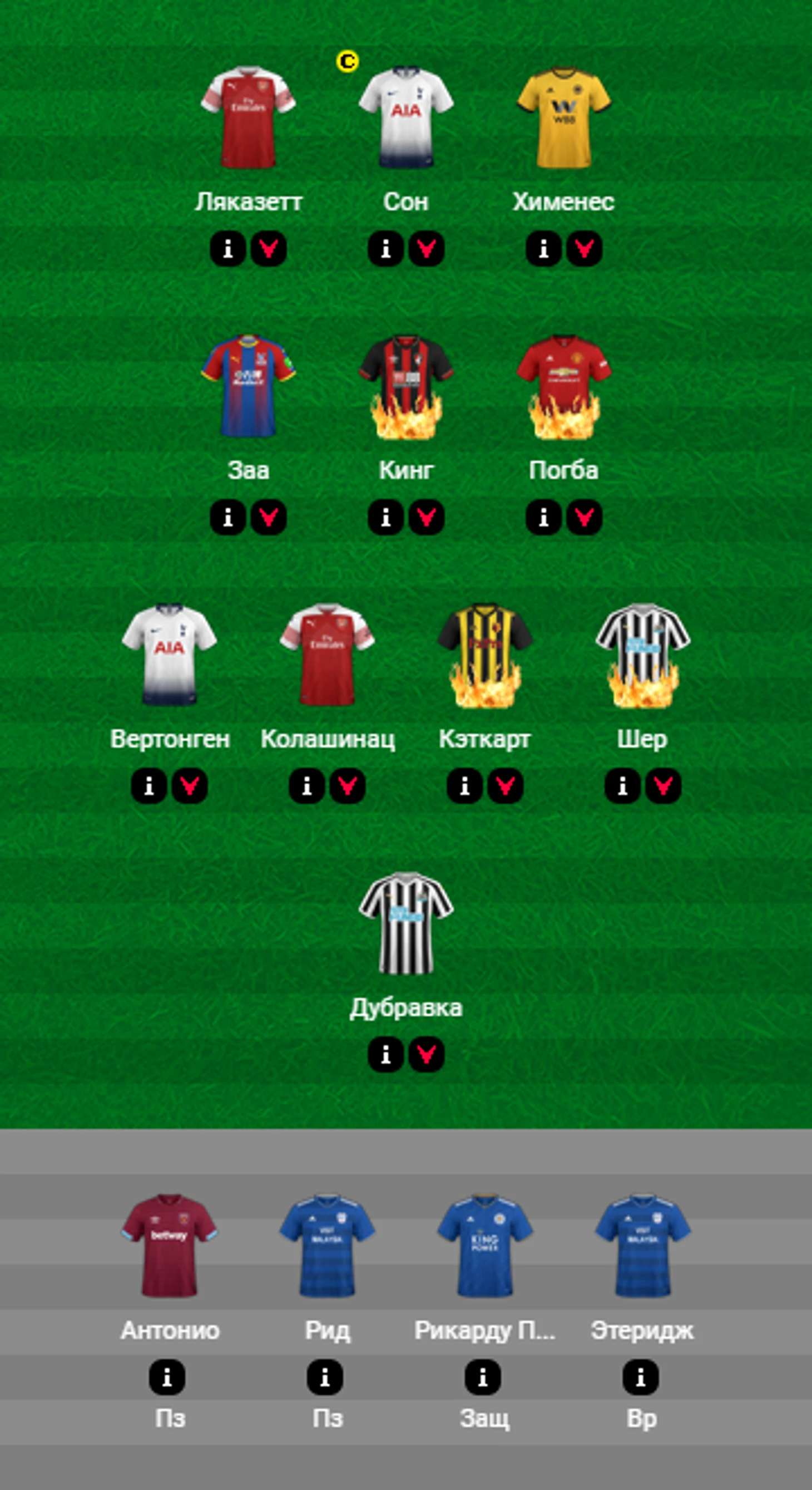 Нападение. Поездка на Кубок Азии словно вдохнула новые силы в Сон Хын Мина 7,5, и кореец продолжает забивать уже в четвертом матче подряд, что в отсутствии Кейна делает его главным выбором в нападении шпор. Продолжает демонстрировать свою стабильность Александр Ляказетт 8,0, без гола или паса которого обходится редкий матч Арсенала, который ведёт упорнейшую борьбу с Юнайтед и Челси за место в Лиге Чемпионов. Отличную результативность показывает Рауль Хименес 7,0, принявший участие в 16 из 34 голов команды и будь волки результативней, боролся бы за звание лучшего бомбардира лиги.