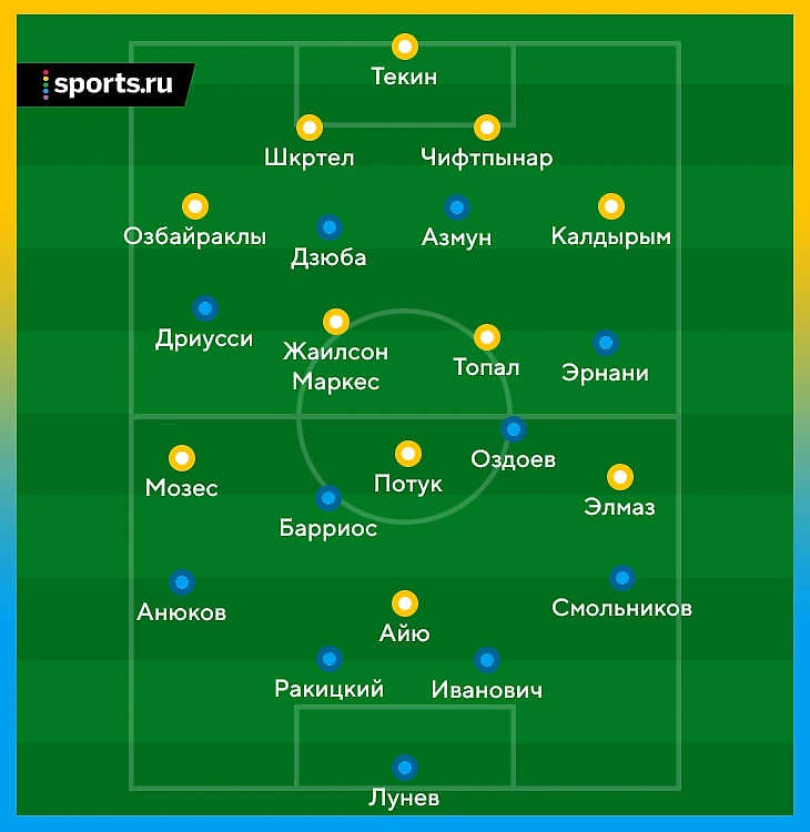 2. У «Фенербахче» было три изменения по сравнению с первой игрой: Озбайраклы вместо дисквалифицированного Ислы на правом фланге обороны, Айю вместо травмированного Вальбуэны и – неожиданно – Потук вместо Слимани.