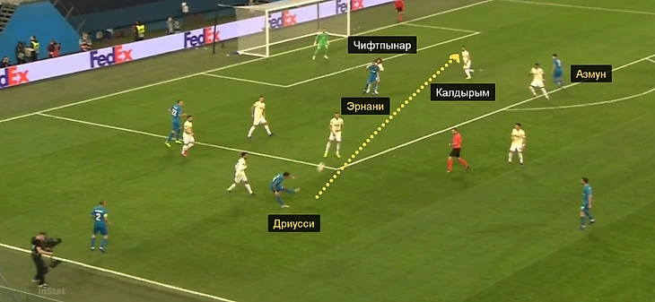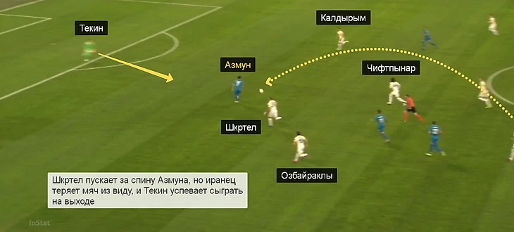 Первое такое единоборство привело к голу Оздоева. Центральный защитник Чифтпынар остался с Эрнани, а Азмун умно ушел к Калдырыму.