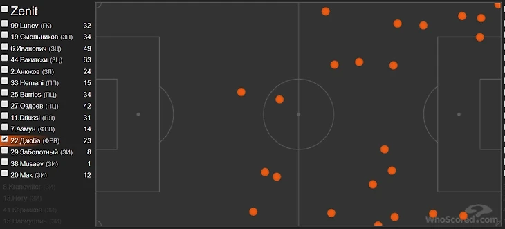 Мы много раз говорили, что у Артема исключительные (для классического «столба») диспетчерские навыки, а габариты повышают его устойчивость к прессингу. Кстати, карту передач Дзюбы наверняка будет интересно изучить всем, кто упрекает его в «пешеходности».