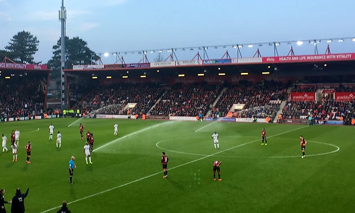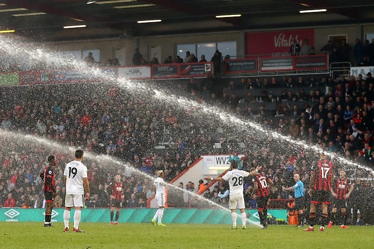 В конце матча «Борнмут» – «Вулверхэмптон» работники стадиона «Виталити», кажется, забыли, что игра еще не закончилась – и включили полив газона.