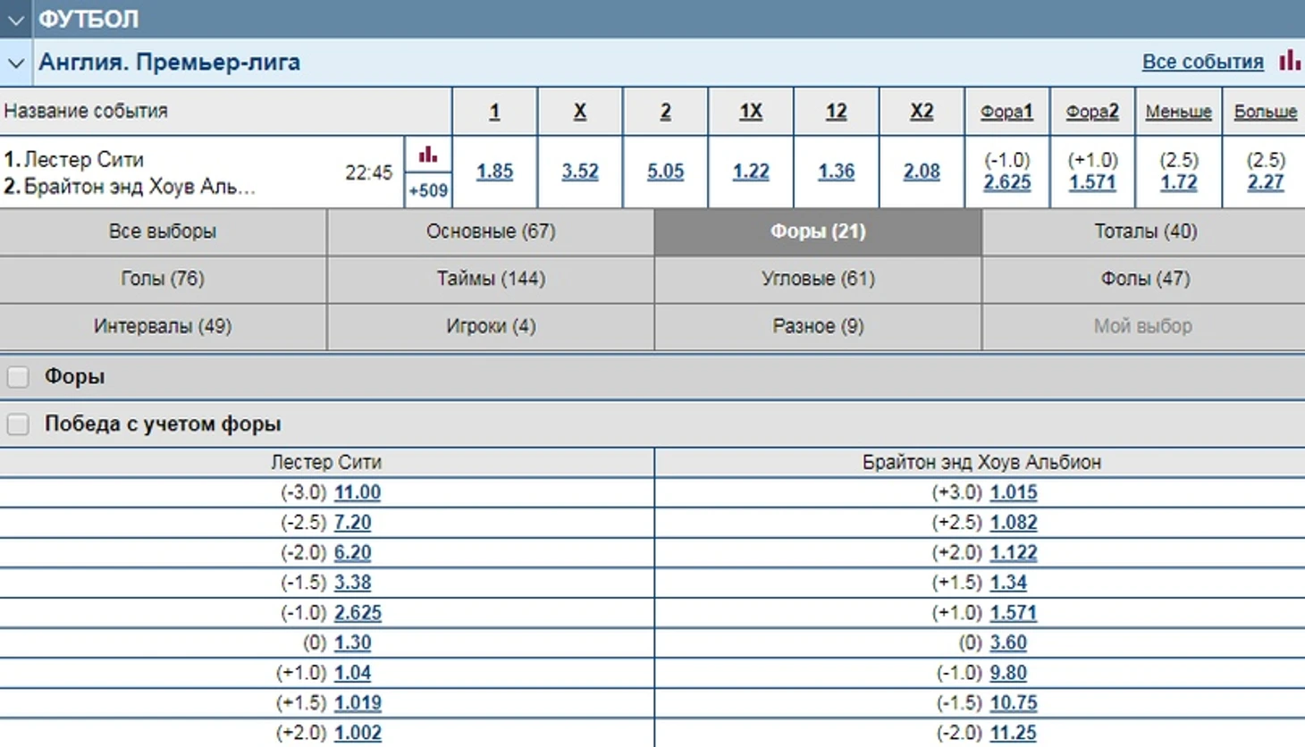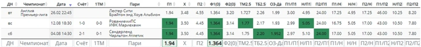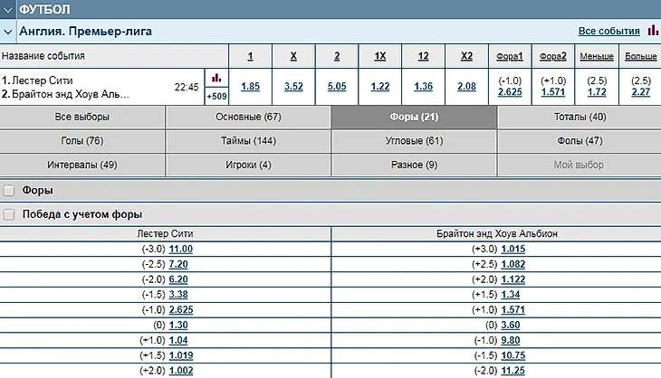 Анализ матча Лестер Сити - Брайтон. Коэффициентный анализ
