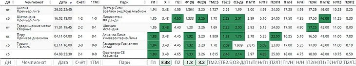 П1+X.Первоначальная проверка коэффициента на фаворита с коэффициентом на ничью.