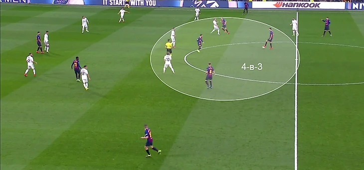 Если «Барса» владела мячом повыше, то ситуация превращалась в 4-против-3 – снова в пользу «Барсы»: