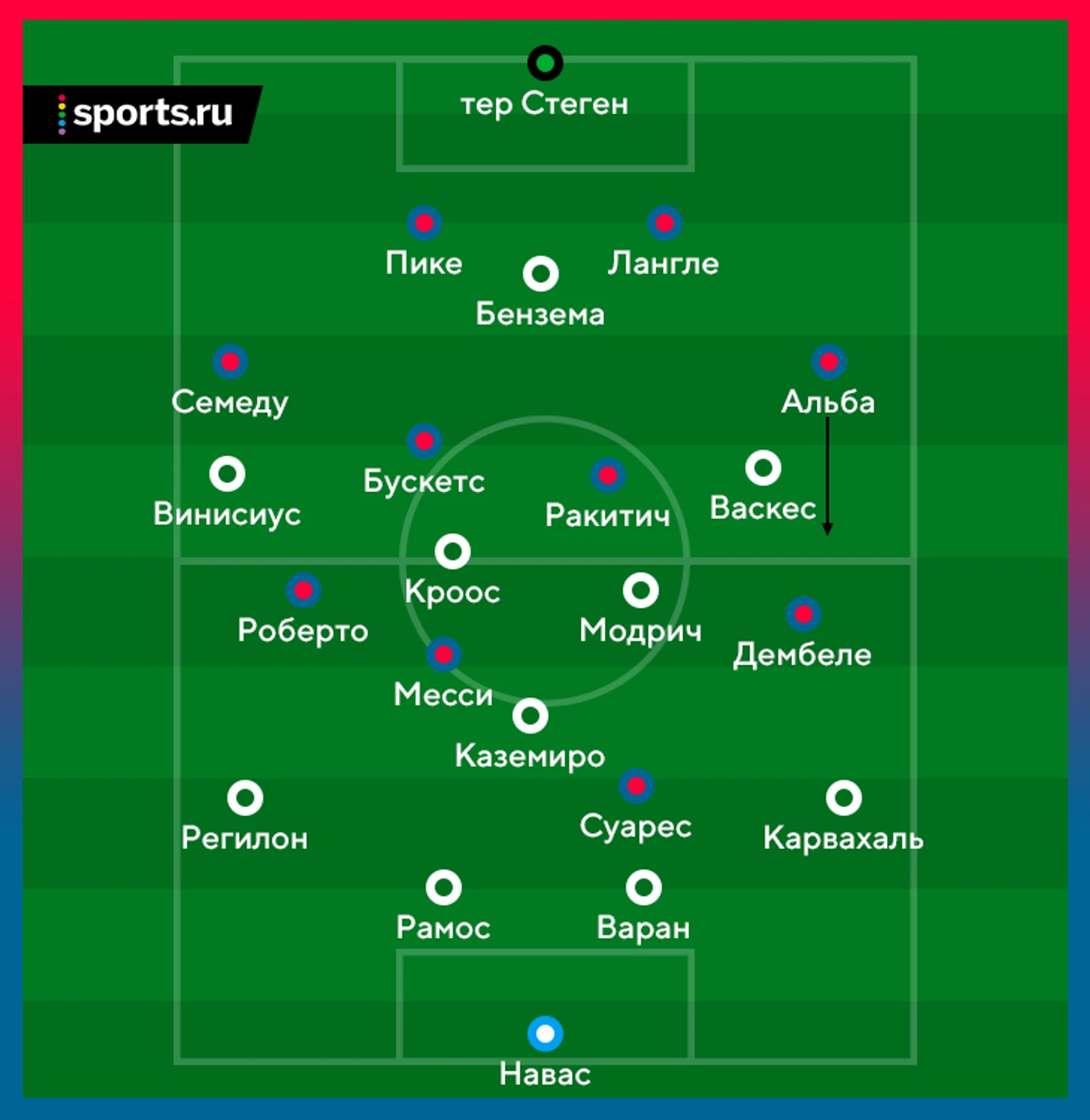Третий – всем все понятно. Пошли даже экспериментальные замены: «Реал» дал поиграть Федерико Вальверде, «Барса» попробовала схему 4-5-1 с Месси в роли единственного форварда.