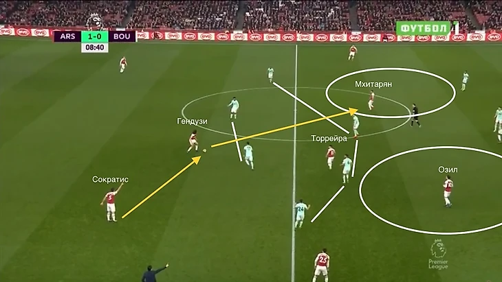 Гендузи пасом между линий находит свободного Мхитаряна. И у Озила, и у армянина много свободы.