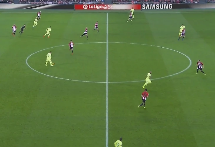 3.Возможно Месси доставляет мяч не так быстро как нужно .Атлетик успел вернуться, но барселона уже крутит перед штрафной соперника. Бускетс- Месси- Коутиньо .Лео отлично находит Роберто .(ему что на лево давать, что на право ).Прострел перехвачен, атлетик играет на вынос .Подбор за барсой, мяч снова у Пике.