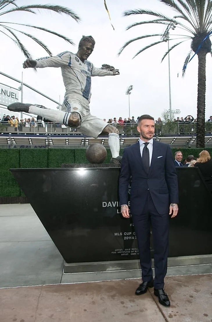 Статую Бекхэма сделали скульпторы Джули и Омри Амрани. Они же делали статую легенды баскетбола Карима Абдул-Джабара возле «Стэплс Сентер». Статуя изображает знаменитый удар Дэвида с правой, который когда-то вдохновил британского режиссера Гуриндер Чадху на создание фильма «Играй, как Бекхэм» (помните совсем юную Киру Найтли?).