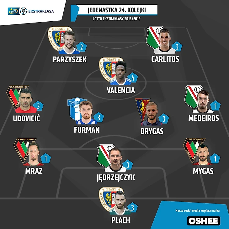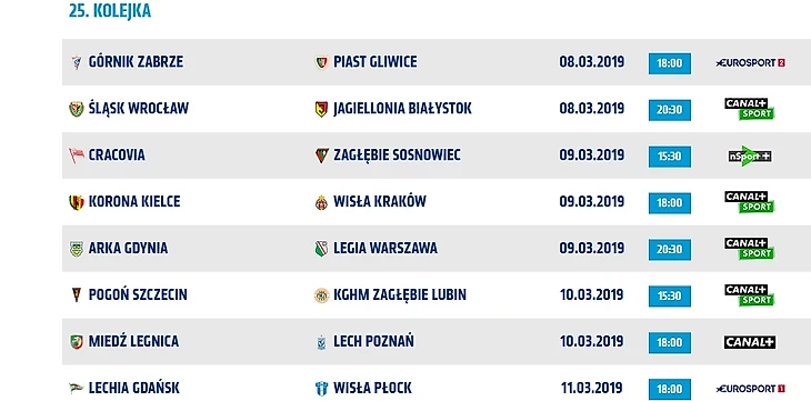 Фото: ekstraklasa.org, piast-gliwice.eu, legia.com, zaglebie.eu, jagiellonia.pl, wisla-plock.pl, wisla.krakow.pl, lechpoznan.pl, zaglebie.com.
