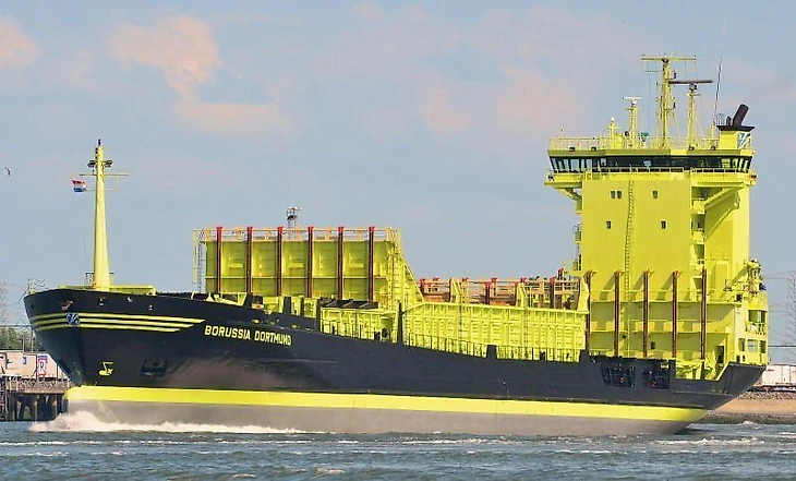 Завидя такой, можно предположить, что вы стали свидетелем некой оригинальной спонсорской активации — брендируют же аналогичным образом самолёты, принадлежащие официальным перевозчикам футбольных клубов, ну а «Боруссия», не иначе, и с корабельщиками смогла договориться...