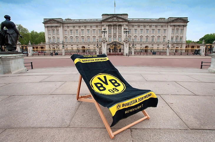 Деннис Том: «Когда пять лет назад мы дошли до финала Лиги Чемпионов, и поняли, что в решающем матче на «Уэмбли» нам играть с «Баварией», мы, конечно, задумались, как бы эту тему обыграть. В итоге придумали вот что: купили пляжный шезлонг, за три дня до игры выставили его в самом центре Лондона, прямо у Букингемского дворца, накрыли клубным полотенцем с надписью «Занято», всё это сфотографировали и выложили в «Фейсбук».