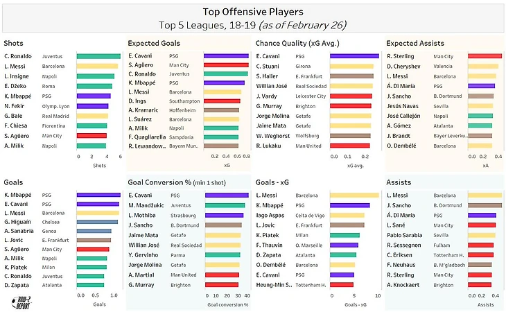 Лучшие игроки атаки из ТОП 5 чемпионатов по восьми различным показателям. Тут можно почерпнуть много хороших пиков.