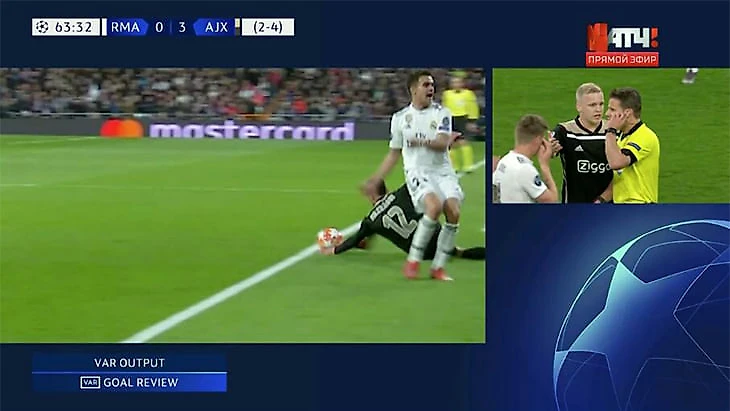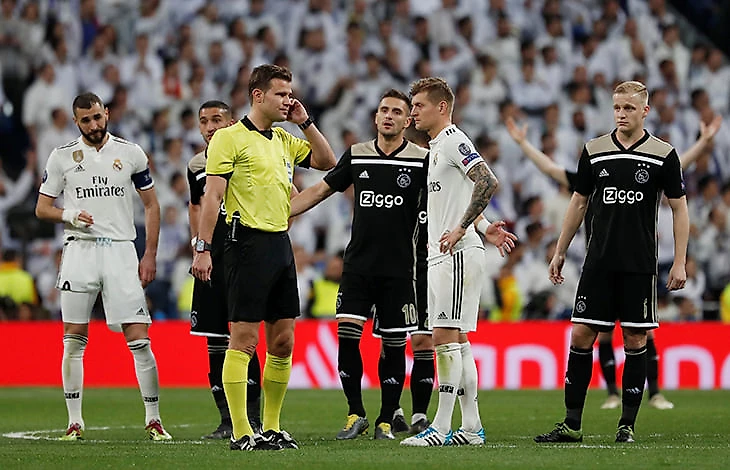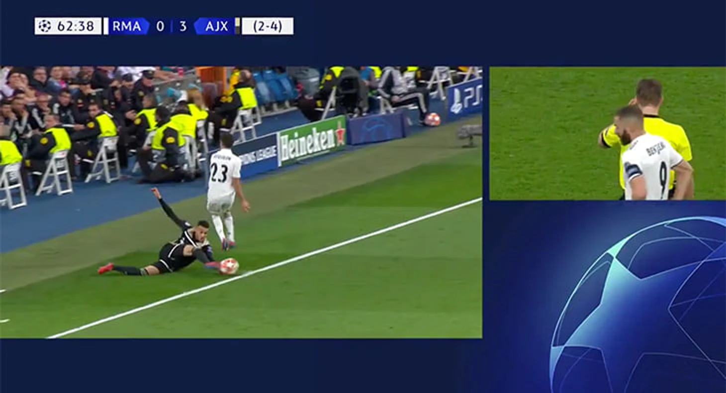 После того, как Душан Тадич забил шикарный третий гол «Реалу», игра остановилась на четыре минуты. Судья Феликс Брих изучал видеоповтор, чтобы понять, ушел мяч за боковую во время подката Нуссаира Мазрауи или нет.