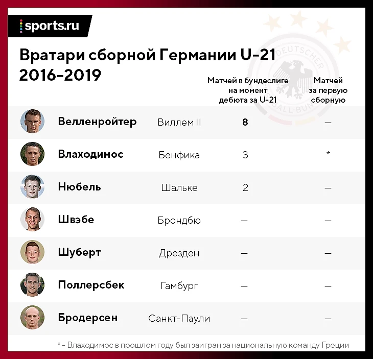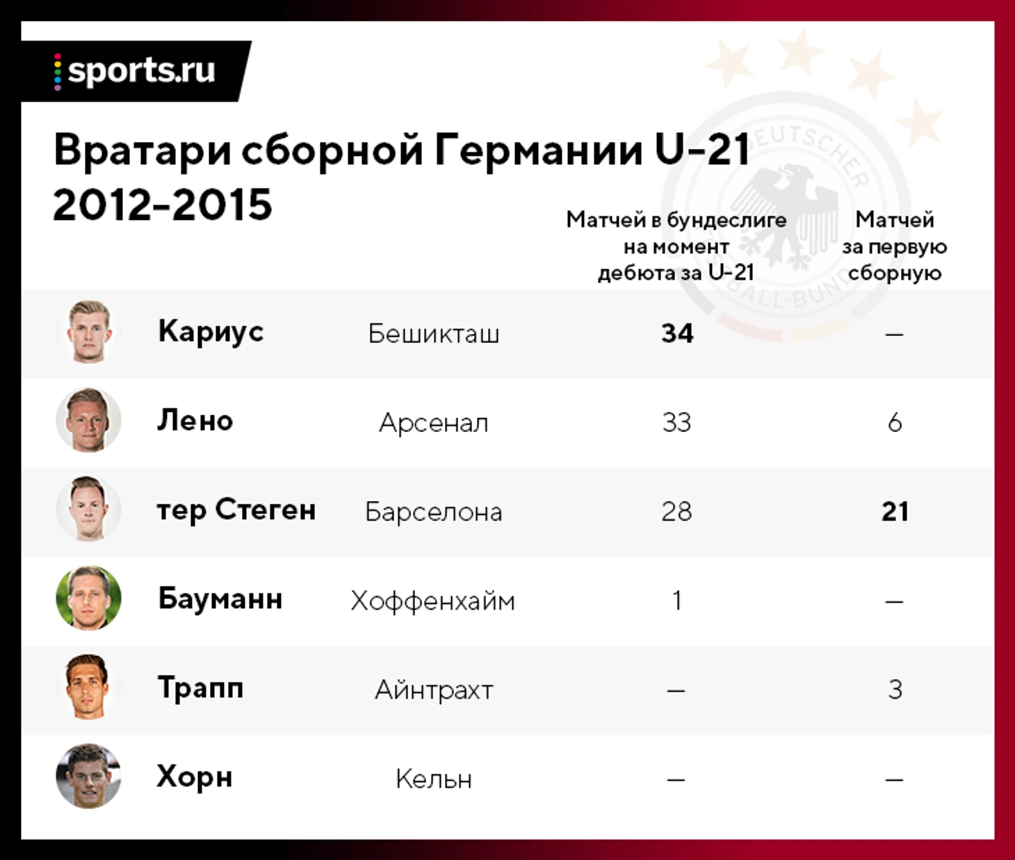 Вот так выглядела вратарская заявка немецкой молодежки с 2012-го по 2015-й.