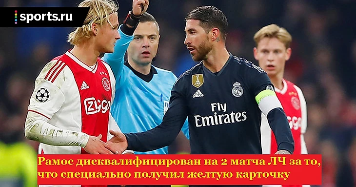 Дисциплинарный комитет УЕФА тут же отреагировал на слова испанского защитника и за преднамеренное получение ЖК дисквалифицировал Серхио Рамоса на два матча.