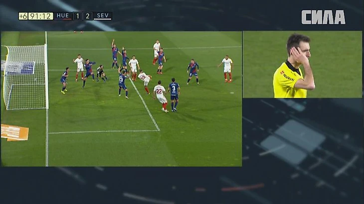 "VAR...отменен гол. Офсайд. Да-да, офсайд. Я был прав. Знаете, смутился ненадолго, потому что...ну, бывает такое, когда не самое очевидное здесь вступило правило футбольное. Ну опять же для тех, кто не понимает, когда вратарь выходит, то судится по вратарю. И Мунир был ЗА линией вратаря в момент гола".
