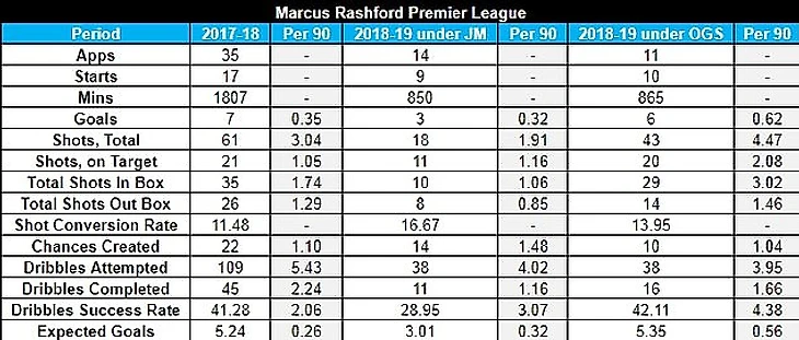 Статистика Маркуса Рэшфорда тоже преобразилась.