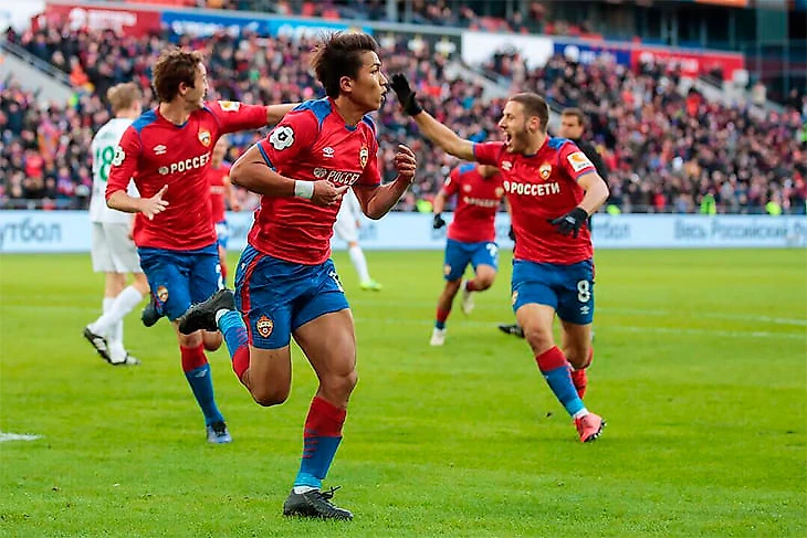 • Первый гол в матче и вообще за ЦСКА забил японец Такума Нисимура: подача Щенникова, пас головой Фернандеса (он лучший в матче по касаниям – 83), бережная скидка Чалова – и расстрел от Нисимуры.