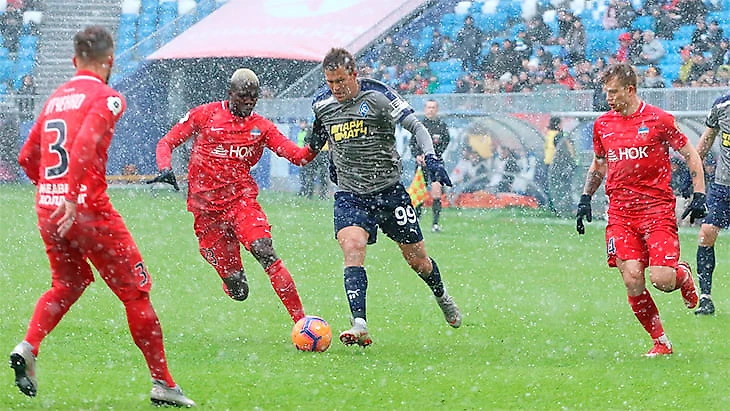 Днем в городе шел мощный снегопад, но команде он не помешал: в первом тайме хозяева забили всего раз (с пенальти), но затем продолжили шторм и организовали еще целых три мяча.