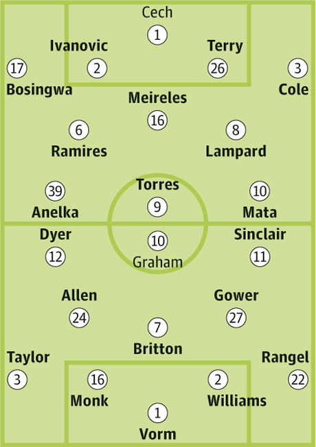 Запасные: Тернбулл, Иларио, Феррейра, Давид Луиз, Ромеу, Макихран, Лукаку, Калу, Микель, Малуда, Дрогба