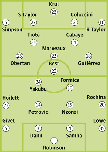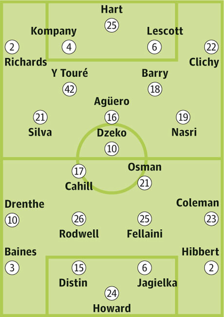 Запасные: Пантиллимон, Тэйлор, Сабалета, Коларов, Савич, Балотелли, Разак, Онуоха, Тевез, К.Туре, Милнер, Харгривз, Вабара