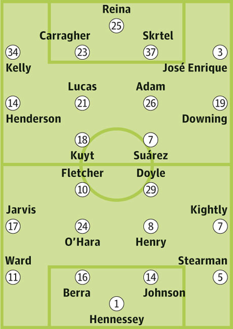 Запасные: Дони, Кэрролл, Джеррард, Родригес, Спиринг, Уилсон, Шелви, Флэнаган, Робинсон, Коатес, Беллами, Аурелио